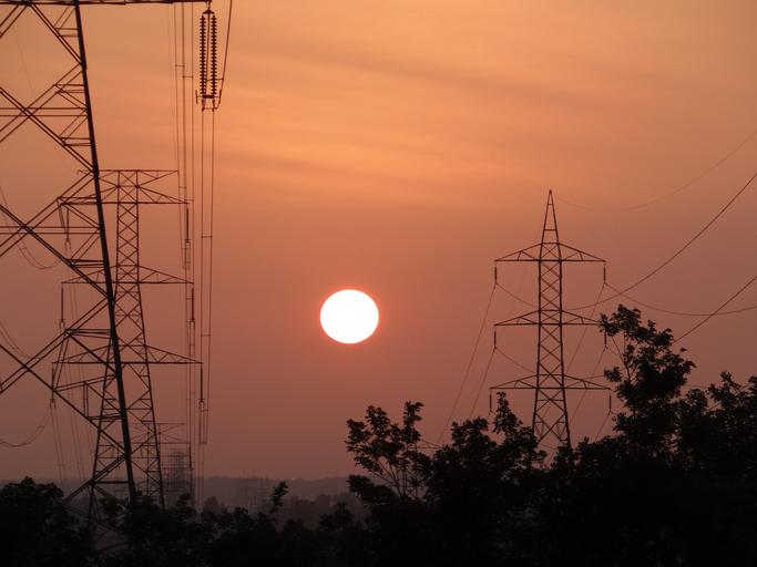 Keywords: sunset electric pylon electric tower shimoga karnataka india