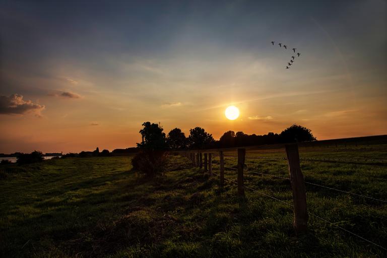 Keywords: sunset evening sky sky landscape mood back light meadow nature green hdr