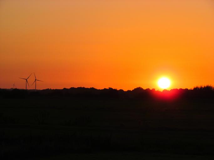 Keywords: sunset evening windmill mecklenburg afterglow sky evening sky dusk abendstimmung landscape trees wind energy nature meadow