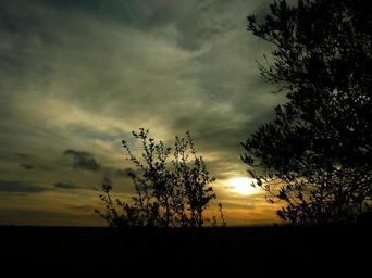 Keywords: sunset field winter landscape backlight olive horizon sky clouds sun cloudy purity hill park dehesa forest