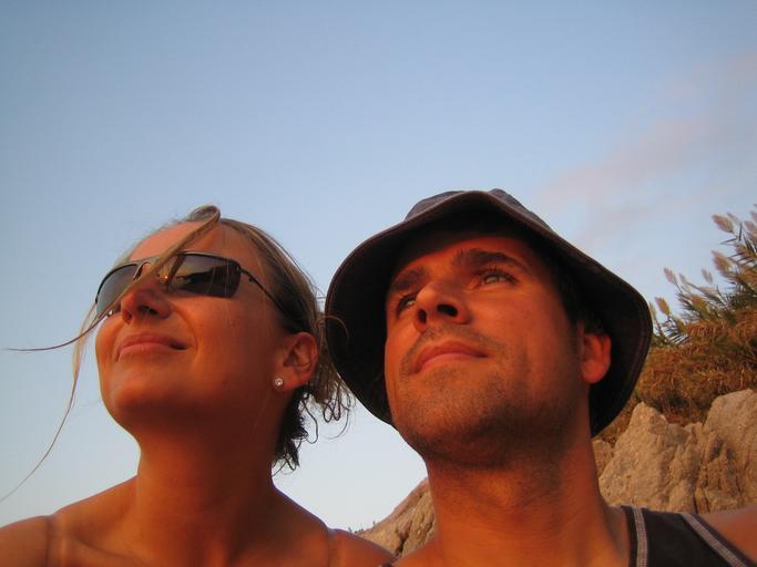 Keywords: sunset friendship pair two love together happy romance lovers before couple