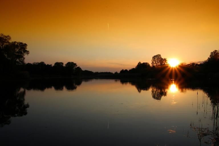 Keywords: sunset lake forest trees nature romance abendstimmung water mirroring