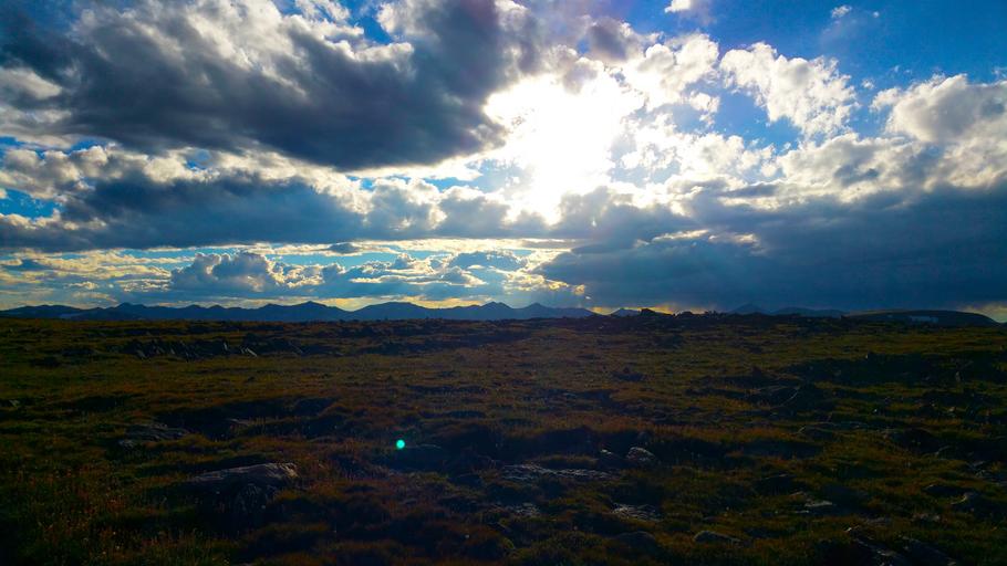 Keywords: sunset landscape cloud break sunlight tranquil sun rays light rays rolling clouds mountain view