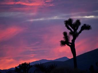 Keywords: sunset landscape mountains joshua trees silhouettes desert nature sky colorful dusk evening plant scenic wilderness national park california usa west twilight clouds