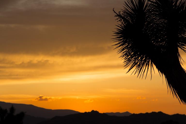 Keywords: sunset landscape mountains plant silhouettes desert nature sky colorful dusk evening scenic wilderness joshua tree national park california usa west twilight clouds