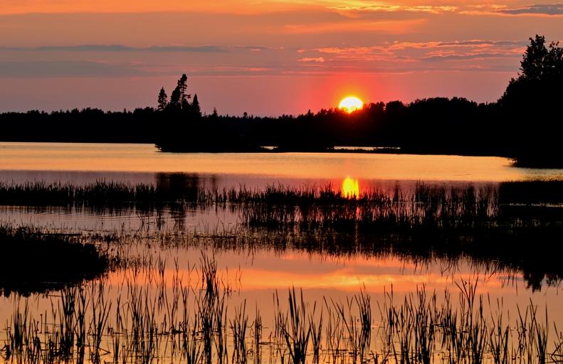 Keywords: sunset landscape twilight sun nature lake summer colors trees sky clouds québec