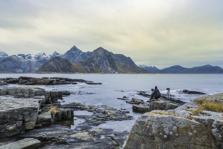 Keywords: sunset lofoten boats cabins sky refuge valley blue nature norway