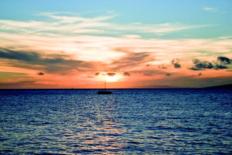 Keywords: sunset ocean lake boat water leisure scenic nature blue horizon