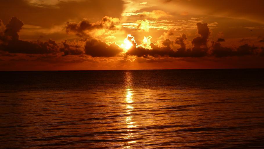 Keywords: sunset ocean sea dramatic sun sky nature beach water ripples reflection outdoors peace clouds horizon spectacular