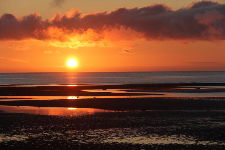 Keywords: sunset ocean sun sky beach sunrise dusk evening reflection shore