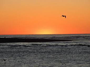 Keywords: sunset orange coast oregon sun landscape yellow horizon beach ocean bird