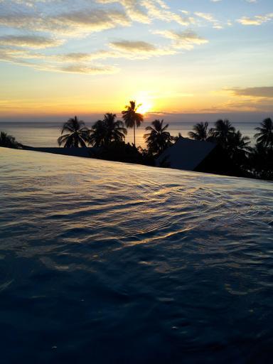 Keywords: sunset pool water evening sea thailand clouds water ripple glare on the water horizon