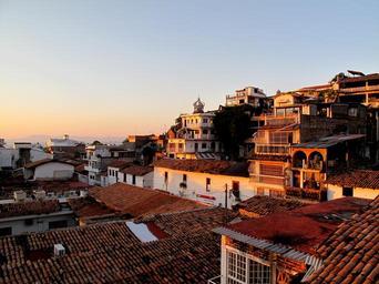 Keywords: sunset roof mexico buildings residential red houses sunny town