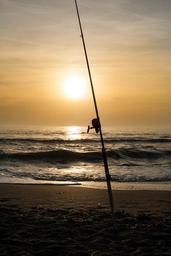 Keywords: sunset sea beach sand summer clouds fishing rod sun