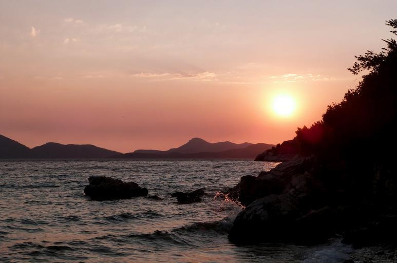 Keywords: sunset sea sun sunrise sunlight evening outdoor wave seascape relax reflection horizon dawn orange shore dusk scenic coastline paradise peace light sunshine idyllic tranquil bright morning vibrant scenery vivid view nature islands rocks