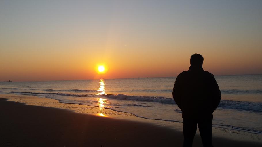 Keywords: sunset sea wave dusk autumn water seaside walk evening sky orange one lonely