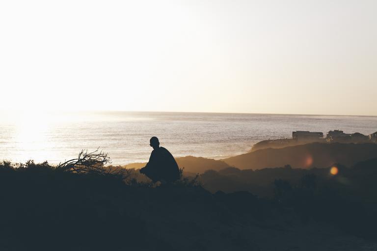 Keywords: sunset silhouette coast people sky water ocean sea horizon landscape sun rays nature hills city town village outdoors adventure