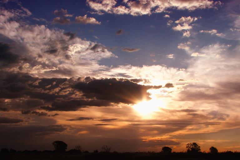 Keywords: sunset sky clouds landscape evening outdoor sunlight orange blue scenic dramatic
