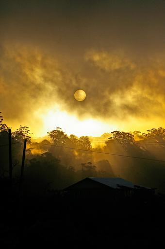 Keywords: sunset sky clouds yellow grey weather australia horizon trees