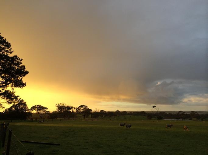 Keywords: sunset stormy clouds sky storm weather dramatic landscape dusk ranch sheep