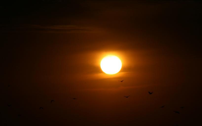 Keywords: sunset sun birds red fire sky in the evening