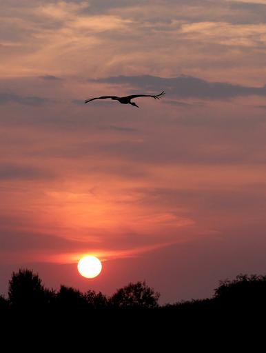 Keywords: sunset sun stork sky cloud red