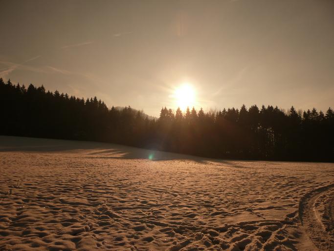 Keywords: sunset winter sky snow trees wintry landscape sun snowfield evening sky abendstimmung mood nature cold red snow landscape evening color game