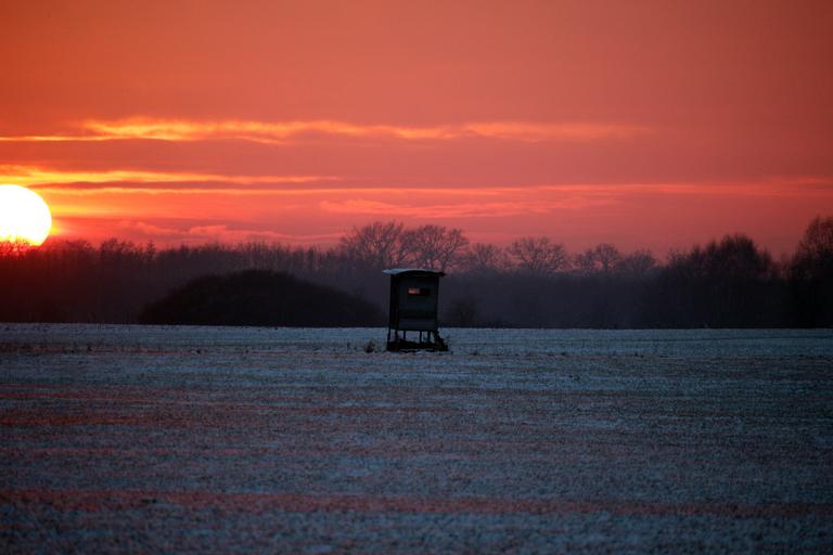 Keywords: sunset winter snow ansitz hunting seat wintry afterglow
