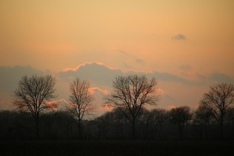Keywords: sunset winter trees sky clouds wintry evening sky nature