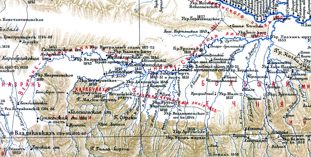 | Keywords: Sunzha Line.png ru Ка та Сунженской линии 1899-01-01 Фелицын Е Д Военно-исто ическая ка та севе о-восточного Кавказа асштаб в 1 англ дюйме 20 вё ст Тифлис 1899 опубликована в книге «Исто ический оче к кавказских войн от их начала до п исоединения Г узии» Фелицын Е Д Военно-исто ическая ка та севе о-восточного Кавказа асштаб в 1 англ дюйме 20 вё ст Тифлис 1899 опубликована в книге «Исто ический оче к кавказских войн от их начала до п исоединения Г узии» other versions PD-old-70-1923 Maps of the Caucasus |