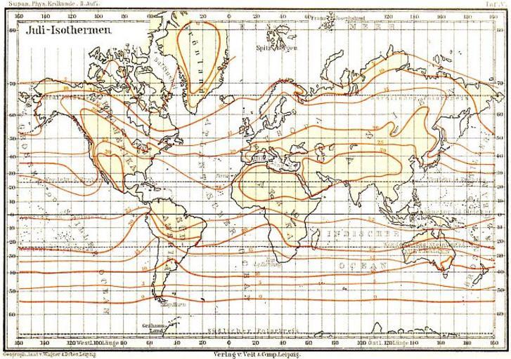 Keywords: Supan JuliIsothermen 1896 resized.jpg de Juli-Isothermen 1896 Alexander Supan Grundzüge der physischen Erdkunde Leipzig 1896 Alexander Supan 1847-1910 1896 PD-old Old maps of the world Alexander Georg Supan