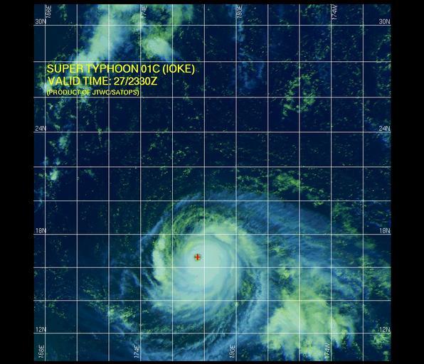 Keywords: Super Typhoon 01C (Ioke) 2006-08-27 23-30.jpg en Super Typhoon 01C Ioke 2006-08-27 23-30Z ja 台風12号 2006年 8 28日午前8時30分(日 時間) 2006-08-27 http //www npmoc navy mil/jtwc/satshots/wp0106sams jpg <br>q v http //www npmoc navy mil/jtwc html Joint Typhoon Warning Center National Oceanic and Atmospheric Administration PD-USGov-Military-Navy Hurricane Ioke |