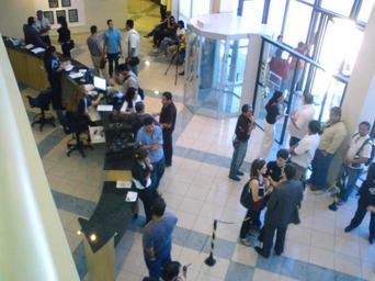 | Keywords: Superintendencia PF Natal Op Higia.jpg Pt Saguão da Superintendência de Polícia Federal em Natal Rio Grande do Norte na manhã de 19 de junho de 2008 Operação Hígia; grande movimentação de repórteres Own Rodrigo César 2008-06-19 Corruption in Brazil June 2008 in Brazil |