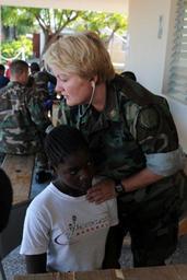 Keywords: Supporting Continuing Promise 2008 DVIDS122582.jpg en Cmdr Lisa Hogan assigned to the U S Public Health Service embarked aboard the amphibious assault ship USS Kearsarge examines a child during medical operations at Las Calderas Naval Base supporting Continuing Promise 2008 Kearsarge is supporting the Caribbean phase of CP 2008 an equal-partnership humanitarian/civic assistance mission between the United States Canada the Netherlands Brazil France Nicaragua Colombia Dominican Republic Trinidad and Tobago and Guyana 2008-10-10 https //www dvidshub net/image/122582 081010-N-+++++-018 2008-10-16 01 51 LAS CALDERAS DO PD-USGov-Military-Navy USS Kearsarge LHD-3 Images from DoD uploaded by Fæ |