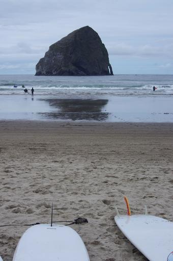 Keywords: surf surfboard rock scenic landscape seascape cloudy beach sea ocean vacation summer surfing water surfer sport board young fun sand lifestyle healthy nature happy oregon
