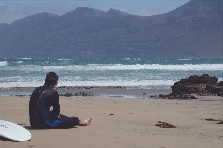 Keywords: surfer beach sand shore water waves ocean sea surfing surfboard guy wetsuit