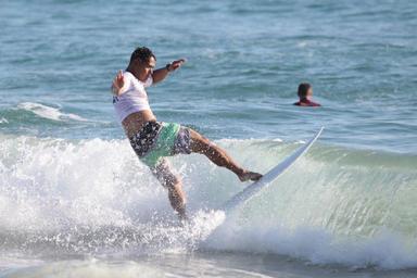 Keywords: surfer surfboard surfing wave water surf ocean hawaii young board fun spray foam balance