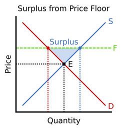 | Keywords: Surplus from Price Floor.svg An illustrative supply/demand graph showing a price floor that has caused a market surplus shaded in light blue Line D red represents the demand price vs quantity demanded line S blue represents the supply price vs quantity supplied point E black is the equilibrium point and line F green dashed represents the price floor own original text Own work based on File Price floor eqm png 1 2008-09-14 Kbolino talk Kbolino Original upload log page en wikipedia Surplus_from_Price_Floor svg 2008-09-14 08 12 Kbolino 400×400× 9721 bytes An illustrative supply/demand graph showing a price floor that has caused a market surplus Own work based on Image Price floor eqm png 14 September 2008 ~~~ Economics |