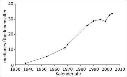 | Keywords: Survival Progress Cystic Fibrosis 01.svg  Die Verbesserung des medianen à berlebensalters von Patienten mit Mukoviszidose Survival progress in cystic fibrosis own data from PMID 16126935 2015-03-29 Kuebi Armin Kübelbeck SVG files on cystic fibrosis |