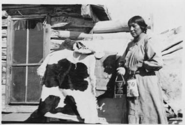 | Keywords: Susie Swan with beaded bags and tanned hides - NARA - 285269.tif Scope and content General notes 285269 Local identifier Department of the Interior Bureau of Indian Affairs Aberdeen Area Office Cheyenne River Agency 1949 - NARA's Central Plains Region Kansas City NREA 400 West Pershing Road Kansas City MO 64108 other date ~ 1935 Record group Record Group 75 Records of the Bureau of Indian Affairs 1793 - 1999 Record group ARC 404 Cheyenne River Agency Photographs compiled 1900 - 1960 Series ARC 285217 File unit File unit ARC Variant control numbers NAIL Control Number NRE-75-CR PHO -1045 yes Other versions <gallery> File Susie_Swan_with_beaded_bags_and_tanned_hides_-_NARA_-_285269 tif tif File Susie_Swan_with_beaded_bags_and_tanned_hides_-_NARA_-_285269 jpg jpg </gallery> NARA-cooperation PD-USGov NARA TIF images with categorized JPGs South Dakota Cheyenne River Indian Reservation Cheyenne 1935 Calf fur-skins Native American beadwork 1935 Log cabins in South Dakota 1935 South Dakota in the 1930s Black and white photographs of South Dakota Fur fashion in 1935 |