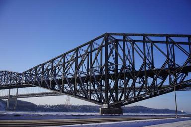 Keywords: suspension bridge bridge quebec winter st lawrence river ice cities steel