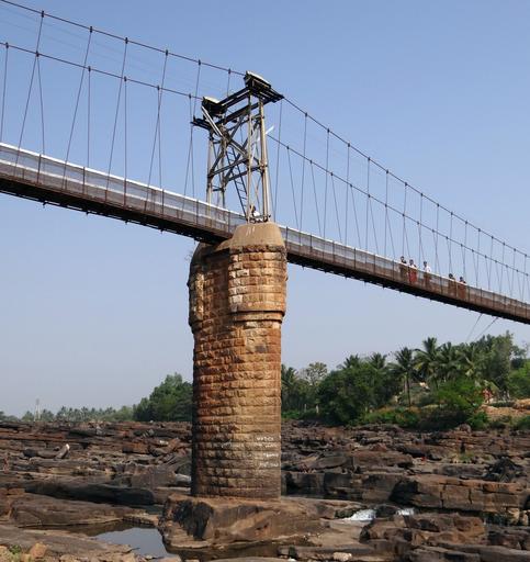 Keywords: suspension bridge rope bridge central pillar ghataprabha river gokak india