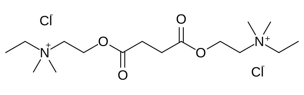 Keywords: Suxethonium chloride.svg Chemical structure of suxethonium chloride Own 01 17 20 January 2015 UTC Ed Edgar181 Quaternary ammonium compounds Neuromuscular blocking agents Succinates Chloride salts of organic compounds