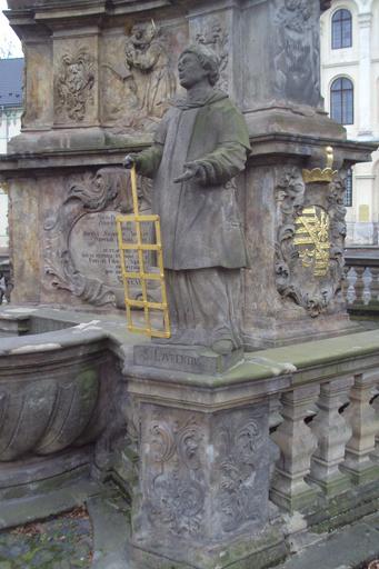 Keywords: Sv.Vavřinec Zákupy.JPG cs Socha svatého Vavřince na morovém sloupě v Zákupech own Zákupák 2013-12-28 Holy Trinity column in Zákupy Statues in Zákupy Statues of Saint Lawrence in the Czech Republic