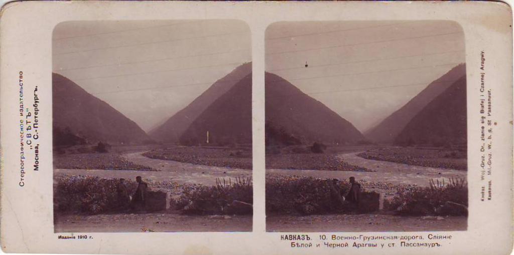 | Keywords: Svet. Caucasus. 010. Geo.Milit.High. White and black Aragvi near Passanauri st..jpg en Geo Milit High White and black Aragvi near Passanauri st ru Военная Г узинская до ога Слияние че ной и белой А агви у станции Пассанау ka საქართველ ს სამხედრ გზა თეთრი და შავი არაგვის შეერთება ფასა აურის სადგურთა 1910 Stereoscopic collection of the SVET publishing author PD-old-100 Uploaded with UploadWizard Caucasus Stereo cards by SVET publishing | ||||