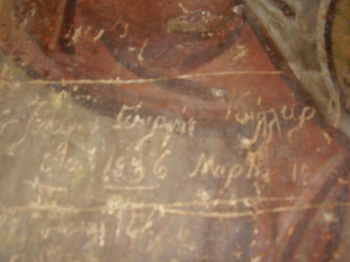 Keywords: SvetiGeorgi.Kyustendil.12.JPG bg Цъ ква Свети Гео ги - Кюстендил - г афити от 1836 г въ ху с едновековните стенописи own Nikomla Church of Saint George Kyustendil