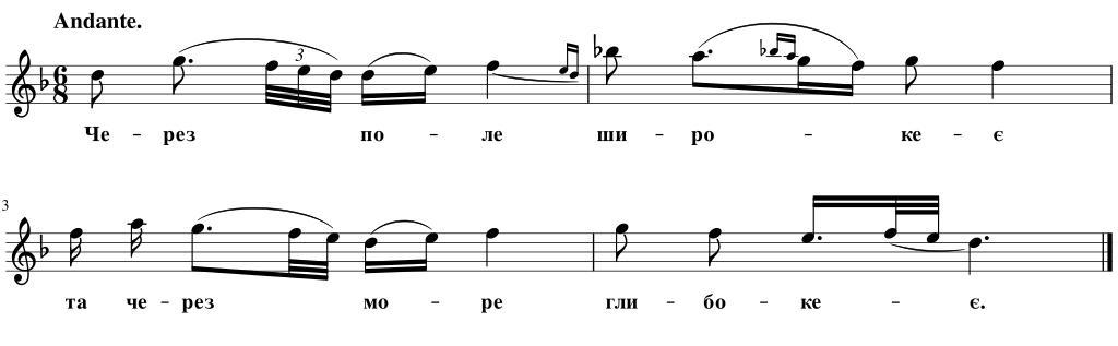 | Keywords: Про страсти Господнї.svg uk Ілюст ація до статті иколи Лисенка а одні музичні ст ументи на Вк аїнї оти на одної псальми П о ст асти Господнї 1894-04-27 Зо я часопис 1894 08 с 185-187 а одні; записано иколою Лисенком other versions Часопис Зо я 1894 08 pdf Hidden background ECECEC; white;color black border 1px grey solid; padding 2px Created by MuseScore <nowiki> < xml version 1 0 encoding UTF-8 > <museScore version 2 06 > <programVersion>2 0 2</programVersion> <programRevision>f51dc11</programRevision> <Score> <LayerTag id 0 tag default ></LayerTag> <currentLayer>0</currentLayer> <Synthesizer> </Synthesizer> <Division>480</Division> <Style> <lastSystemFillLimit>0</lastSystemFillLimit> <TextStyle> <halign>center</halign> <valign>baseline</valign> <xoffset>0</xoffset> <yoffset>6</yoffset> <offsetType>spatium</offsetType> <name>Lyrics Odd Lines</name> <family>FreeSerif</family> <size>11</size> <bold>1</bold> <sizeIsSpatiumDependent>1</sizeIsSpatiumDependent> </TextStyle> <page-layout> <page-height>368 504</page-height> <page-width>1190 55</page-width> <page-margins type even > <left-margin>5 66929</left-margin> <right-margin>5 66929</right-margin> <top-margin>56 6929</top-margin> <bottom-margin>113 386</bottom-margin> </page-margins> <page-margins type odd > <left-margin>5 66929</left-margin> <right-margin>5 66929</right-margin> <top-margin>0</top-margin> <bottom-margin>0</bottom-margin> </page-margins> </page-layout> <Spatium>1 764</Spatium> </Style> <showInvisible>1</showInvisible> <showUnprintable>1</showUnprintable> <showFrames>1</showFrames> <showMargins>0</showMargins> <metaTag name arranger ></metaTag> <metaTag name composer ></metaTag> <metaTag name copyright ></metaTag> <metaTag name creationDate >2015-11-28</metaTag> <metaTag name lyricist ></metaTag> <metaTag name movementNumber ></metaTag> <metaTag name movementTitle ></metaTag> <metaTag name platform >Microsoft Windows</metaTag> <metaTag name poet ></metaTag> <metaTag name source ></metaTag> <metaTag name translator ></metaTag> <metaTag name workNumber ></metaTag> <metaTag name workTitle ></metaTag> <PageList> <Page> <System> </System> <System> </System> </Page> </PageList> <Part> <Staff id 1 > <StaffType group pitched > <name>stdNormal</name> </StaffType> </Staff> <trackName>Violin</trackName> <Instrument> <longName>Violin</longName> <shortName>Vln </shortName> <trackName>Violin</trackName> <minPitchP>55</minPitchP> <maxPitchP>103</maxPitchP> <minPitchA>55</minPitchA> <maxPitchA>88</maxPitchA> <instrumentId>strings violin</instrumentId> <Articulation> <velocity>100</velocity> <gateTime>100</gateTime> </Articulation> <Articulation name staccatissimo > <velocity>100</velocity> <gateTime>33</gateTime> </Articulation> <Articulation name staccato > <velocity>100</velocity> <gateTime>50</gateTime> </Articulation> <Articulation name portato > <velocity>100</velocity> <gateTime>67</gateTime> </Articulation> <Articulation name tenuto > <velocity>100</velocity> <gateTime>100</gateTime> </Articulation> <Articulation name marcato > <velocity>120</velocity> <gateTime>67</gateTime> </Articulation> <Articulation name sforzato > <velocity>120</velocity> <gateTime>100</gateTime> </Articulation> <Channel> <program value 40 /> <synti>Fluid</synti> </Channel> <Channel name pizzicato > <program value 45 /> <synti>Fluid</synti> </Channel> <Channel name tremolo > <program value 44 /> <synti>Fluid</synti> </Channel> </Instrument> </Part> <Staff id 1 > <Measure number 1 > <KeySig> <accidental>-1</accidental> </KeySig> <TimeSig> <sigN>6</sigN> <sigD>8</sigD> <showCourtesySig>1</showCourtesySig> </TimeSig> <Tempo> <tempo>1 16667</tempo> <text>Andante </text> </Tempo> <Chord> <durationType>eighth</durationType> <Lyrics> <syllabic>begin</syllabic> <text>Че</text> </Lyrics> <Note> <pitch>74</pitch> <tpc>16</tpc> </Note> </Chord> <Slur id 2 > <track>0</track> <SlurSegment no 0 > <o4 x 0 15 y -0 75 /> </SlurSegment> </Slur> <Chord> <BeamMode>no</BeamMode> <dots>1</dots> <durationType>eighth</durationType> <Lyrics> <syllabic>end</syllabic> <text> ез</text> </Lyrics> <Slur type start id 2 /> <Note> <pitch>79</pitch> <tpc>15</tpc> </Note> </Chord> <Tuplet id 1 > <pos x 0 15 y -6 9 /> <normalNotes>2</normalNotes> <actualNotes>3</actualNotes> <baseNote>32nd</baseNote> <Number> <style>Tuplet</style> <text>3</text> </Number> <offset x 0 15 y -6 9 /> </Tuplet> <Chord> <Tuplet>1</Tuplet> <BeamMode>begin</BeamMode> <durationType>32nd</durationType> <Note> <pitch>77</pitch> <tpc>13</tpc> </Note> </Chord> <Chord> <Tuplet>1</Tuplet> <durationType>32nd</durationType> <Note> <pitch>76</pitch> <tpc>18</tpc> </Note> </Chord> <Chord> <Tuplet>1</Tuplet> <durationType>32nd</durationType> <Slur type stop id 2 /> <Note> <pitch>74</pitch> <tpc>16</tpc> </Note> </Chord> <Slur id 3 > <track>0</track> </Slur> <Chord> <durationType>16th</durationType> <Lyrics> <syllabic>begin</syllabic> <text>по</text> </Lyrics> <Slur type start id 3 /> <Note> <pitch>74</pitch> <tpc>16</tpc> </Note> </Chord> <Chord> <durationType>16th</durationType> <Slur type stop id 3 /> <Note> <pitch>76</pitch> <tpc>18</tpc> </Note> </Chord> <Slur id 4 > <track>0</track> <SlurSegment no 0 > <o1 x -0 0215942 y 1 71259 /> <o2 x -1 42229 y 2 06709 /> <o3 x -1 5 y 2 1 /> <o4 x 1 53129 y 2 10808 /> </SlurSegment> </Slur> <Chord> <durationType>16th</durationType> <grace16after/> <Note> <pitch>74</pitch> <tpc>16</tpc> </Note> </Chord> <Chord> <durationType>16th</durationType> <Slur type stop id 4 /> <grace16after/> <Note> <pitch>76</pitch> <tpc>18</tpc> </Note> </Chord> <Chord> <durationType>quarter</durationType> <Lyrics> <syllabic>end</syllabic> <text>ле</text> </Lyrics> <Slur type start id 4 /> <Note> <pitch>77</pitch> <tpc>13</tpc> </Note> </Chord> </Measure> <Measure number 2 len 13/16 > <LayoutBreak> <subtype>line</subtype> </LayoutBreak> <Cho