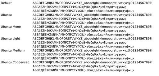 Keywords: SVG Text Font Test Ubuntu.svg en SVG Text Font Test File Default Ubuntu Ubuntu Mono Ubuntu Light Ubuntu Medium Ubuntu Condensed 2013-01-04 own Monaneko cc-zero Uploaded with UploadWizard Font comparisons Ubuntu Font Family