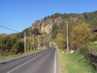 Keywords: Svojkovské skály.jpg cs Skály nad Starým Svojkovem z silnice do Zákup own Zákupák 2010-10-13 Svojkovské skály Road II/268 Czech Republic