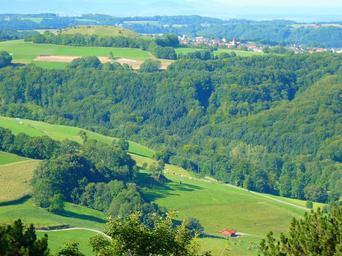 Keywords: swabian alb landscape idyll forest reported sky haze blue